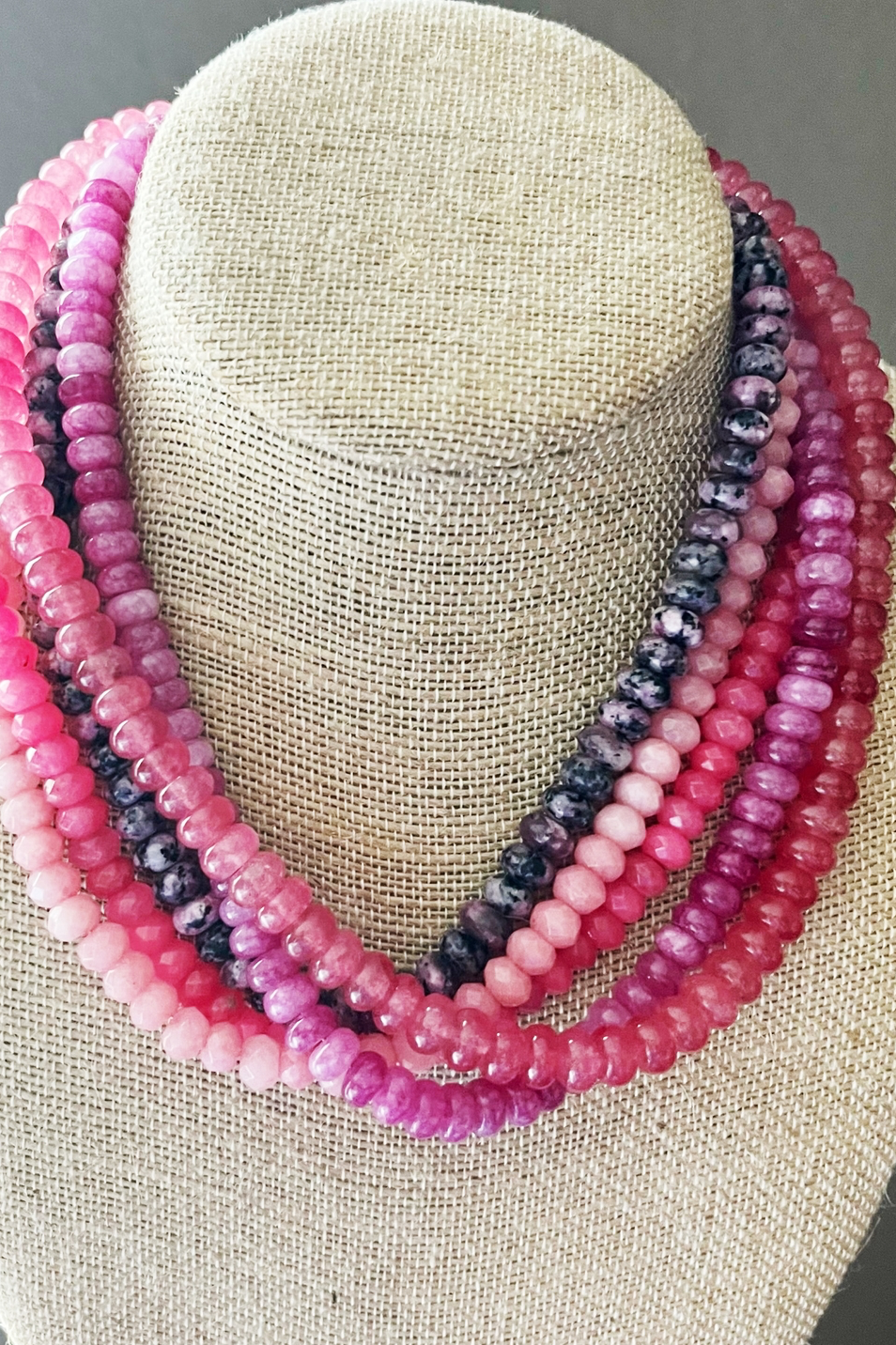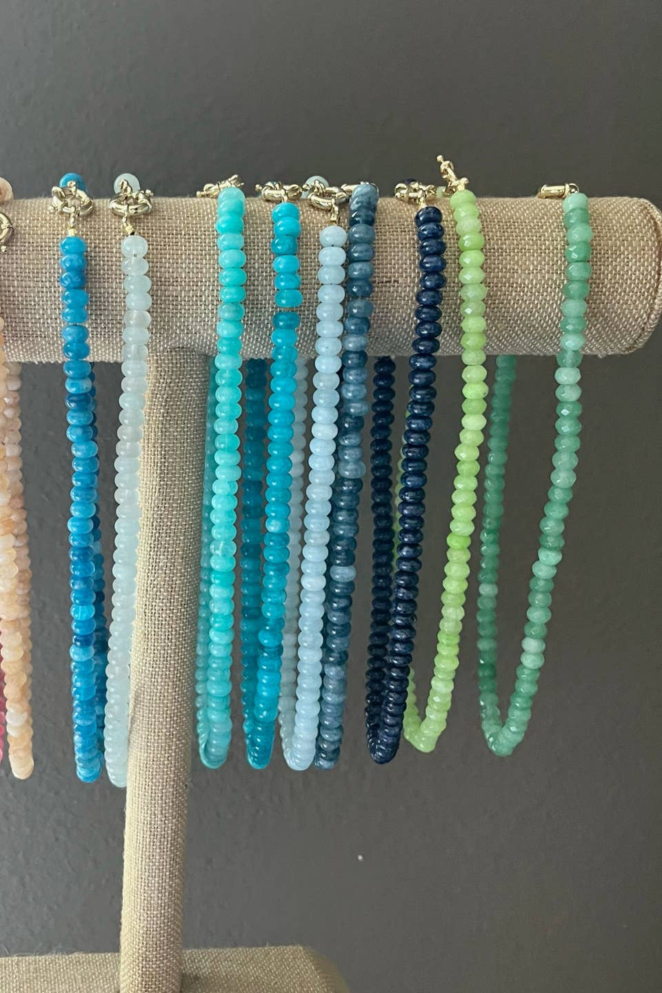 FUN POP OF COLOR FOR ANY OUTFIT. THESE NECKLACES ARE HANDMADE IN CHARLESTON USING GEMSTONE BEADS ANS 18KT GOLD PLATED CLASPS. THESE ARE PERFECT TO ADD A CHARM TO THE CLASP, OR ADD A PENDANT OR CHARM AND WEAR IN THE FRONT, ALSO GREAT TO LAYER OR WEAR ALONE TOO.