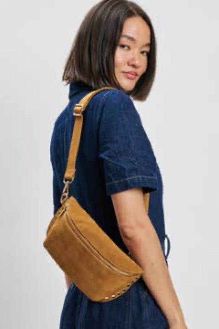 GIZELLE SUEDE BELT BAG IN TAN