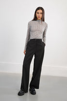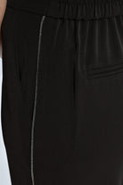 THESE BLACK SUIT PANTS ARE GREAT FOR THE HOLIDAYS. THESE PANTS HAVE A SILVER DETAIL DOWN EACH SIDE, STYLE IS STRAIGHT, HIGH WAIST, ZIP AND BUTTON FLY CLOSURE. THEY HAVE SIDE POCKETS, ELASTICATED BACK WAISTBAND, HAS BACK POCKETS WITH A PIPING DETAIL. DONT PASS ON THESE.