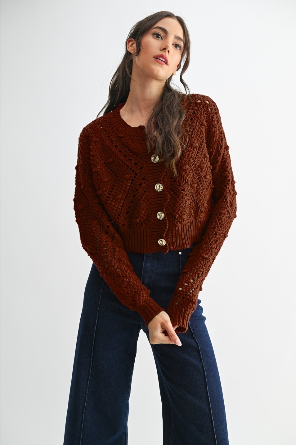 BROWN KNIT CARDIGAN WITH GOLD BUTTONS