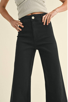 PERFECT TOUCH OF BLACK TO YOUR WARDROBE. THESE STRAIGHT WIDE LEG JEAN HAVE THE PERFECT AMOUNT OF STRECH FOR A VERY COMFORTABLE FIT. NO FRONT POCKETS, TWO BACK POCKETS, UNFINISHED HEM LEG. WEAR OUT FOR A NIGHT OF FUN WITH HEELS AND A SEQUIN TOP, OR WITH SNEAKERS AND A WARM SWEATER. YOU CANT GO WRONG WITH THESE.