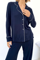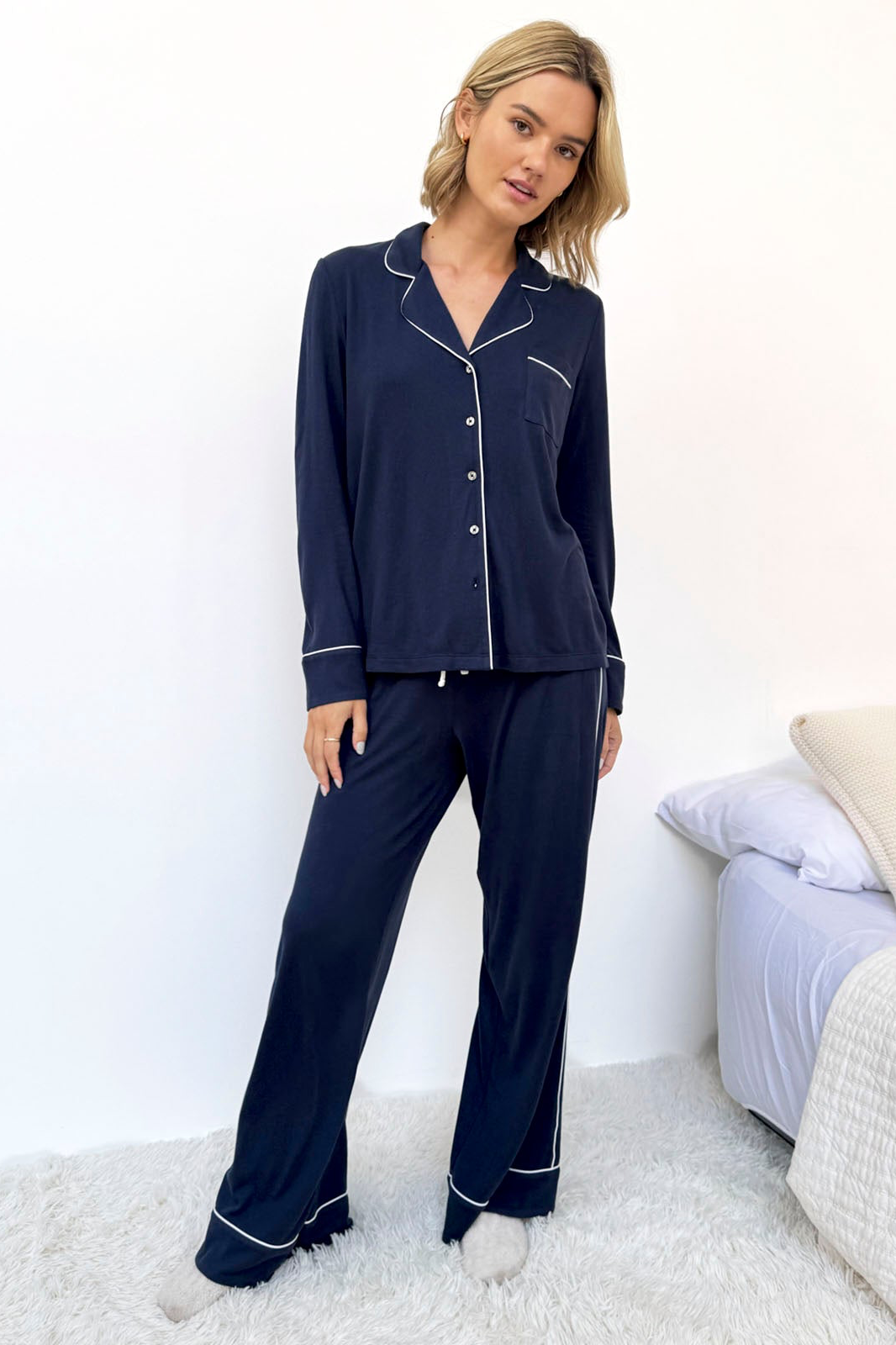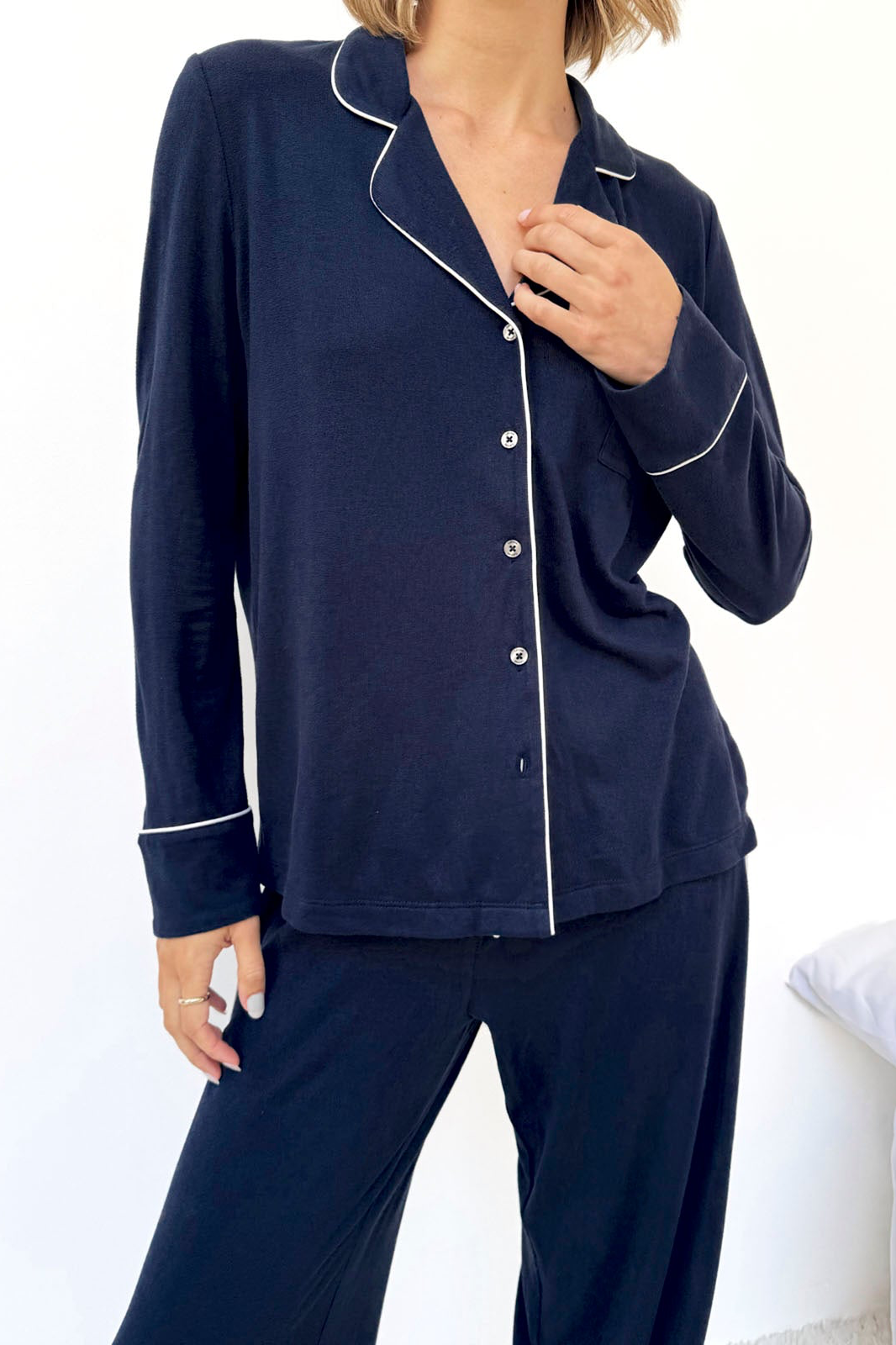 FROM YOUR EVENING SKINCARE ROUTINE TO A RESTFUL SLUMBER, THIS SLLEP SET HAS YOUR COVERED. MADE FROM BRUSHED-FOR-SOFTNESS PILLOWSOFT FABRIC, IT FEATURES A NITCH COLLAR BUTTON DOWN AND MATCHING DRAWSTRING WAIST PANTS. THIS SET HAS A SLIGHT SHEEN, MINIMAL TEXTURE AND AN EXTRA COZY FEEL. TWO-PIECE SET BUTTON DOWN WITH CHEST POCKET.
