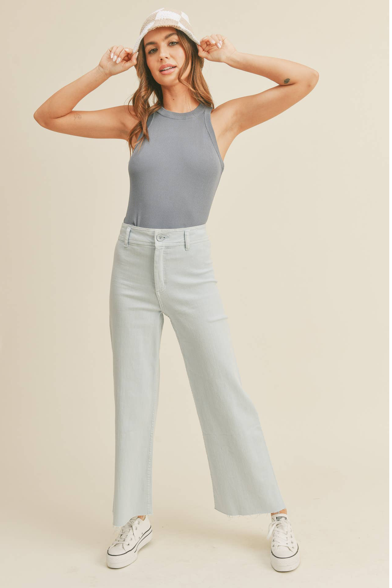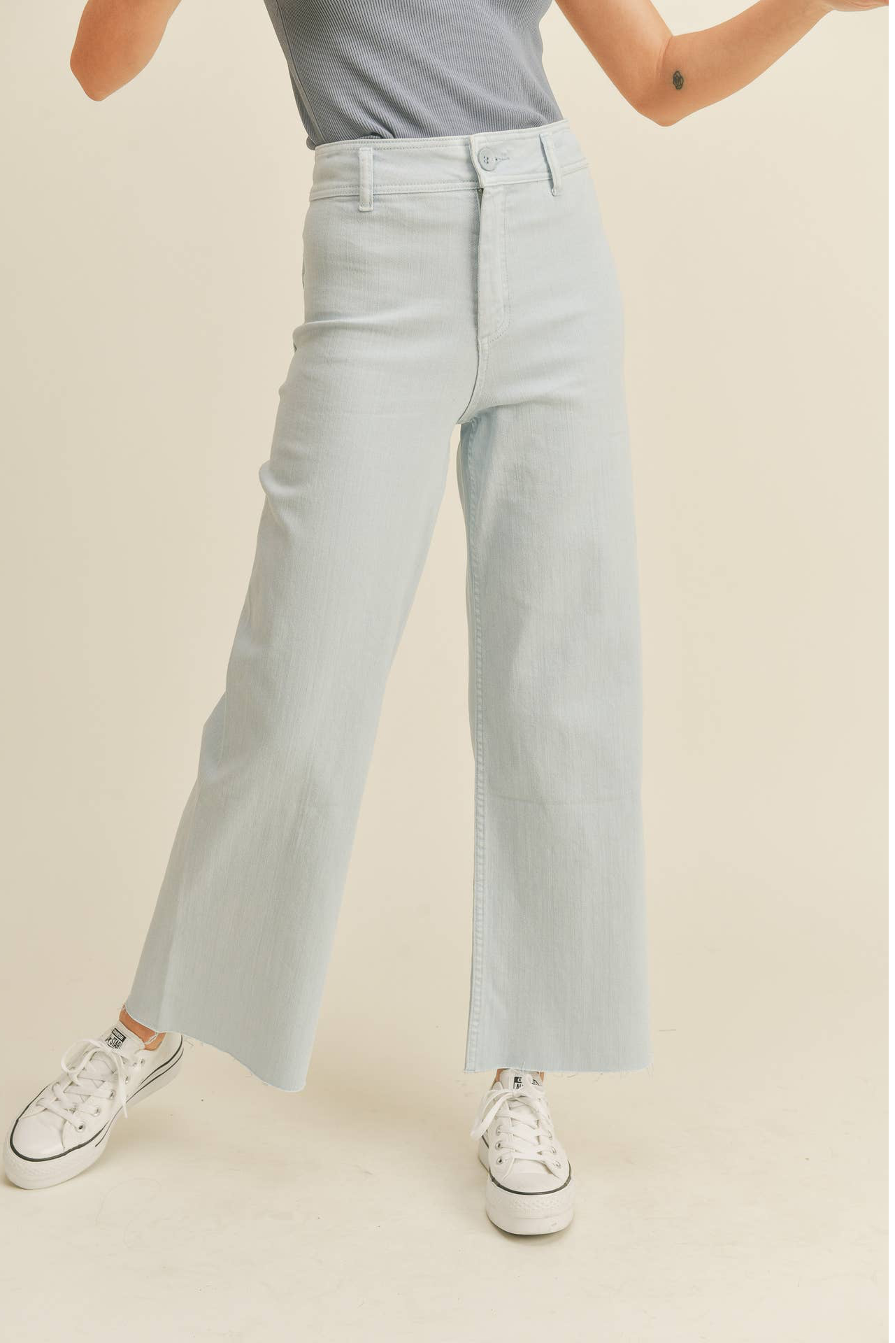 light denim raw hem jean