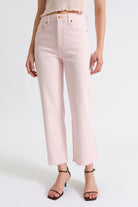 THIS PAIR OF JEANS BRING SOME WAIST-CINCHING, LEG-LENGTHENING SILHOUETTE BUT IN A SOFT, PRETTY PINK WASH THAT INSTANTLY BRIGHTEN YOUR OUTFIT. THE HIGH RISE SHAPES THE WAIST, WHILE THE WIDE ANKLE LEG FEELS MODERN AND FLATTERING. MADE FROM COMFORT STRETCH DENIM, IT HAS JUST ENOUGH GIVE TO MOVE WITH YOU WHILE STILL HOLDING EVERYTHING IN.