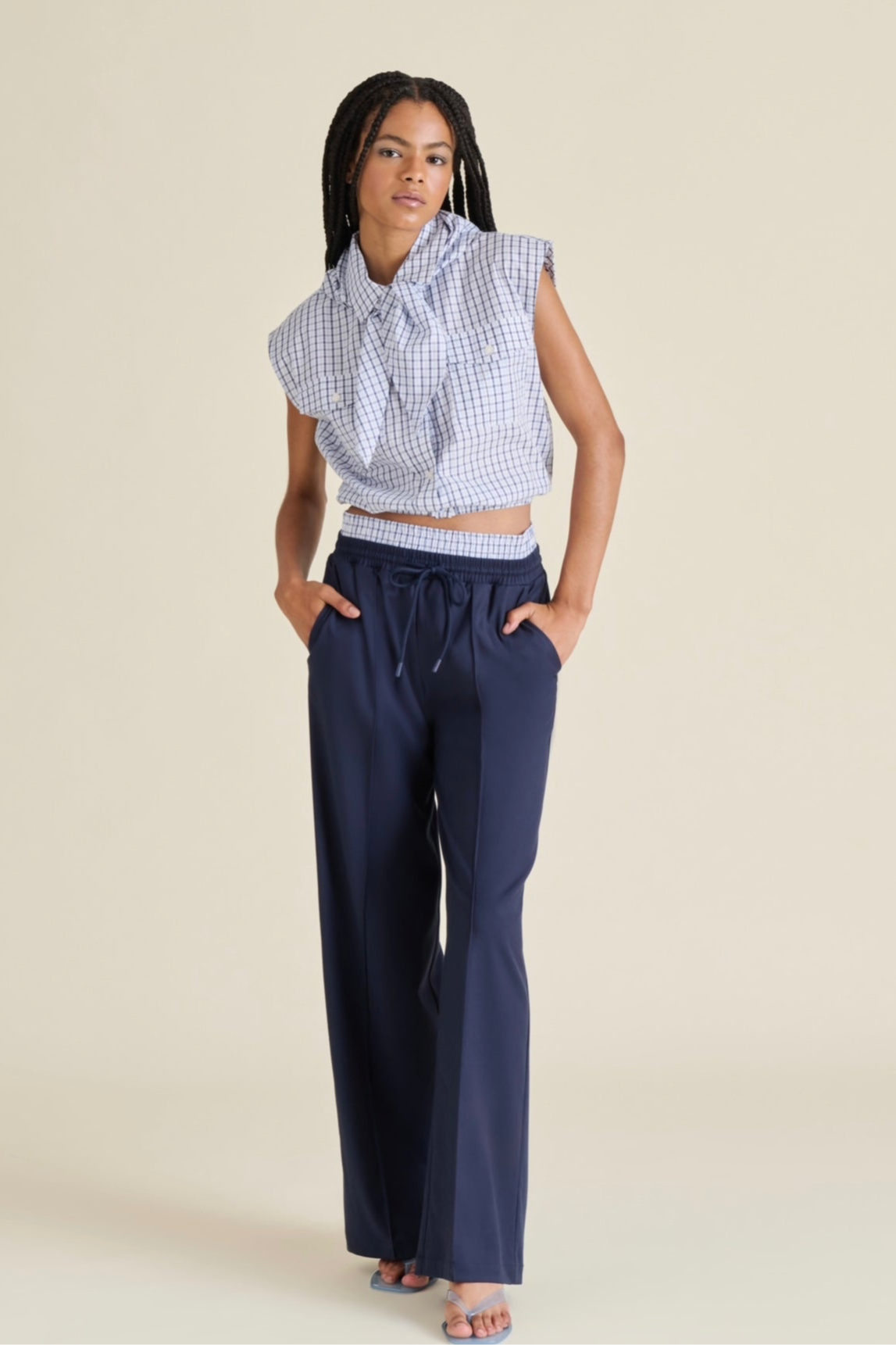 THIS TANK BLOUSE BRINGS INSTANT CHARM TO ANY OUTFIT. THE SIGNATURE NECKTIE DETAIL ADDS A FLIRTY, PREPPY TWIST, WHILE THE CROPPED SILHOUETTE KEEPS THINGS MODERN AND FUN. PERFECT FOR PAIRING WITH HIGH-WAISTED BOTTOMS OR LAYERING OVER YOUR FAVORITE TEE. A VERSATILE PIECE THAT WORKD JUST AS WELL AT BRUNCH AS IT DOES FOR A NIGHT WITH FRIENDS.