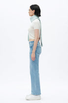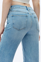 MID-RISE WIDE-LEG JEANS ARE MADE FROM STRETCH DENIM WITH LIGHT BLUE WASH. FEATURING FRONT AND BACK WHISKERING, DISTRESSED ACCENTS, AND A FRAYED HEM. THEY OFFER A VINTAGE-INSPIRED, EFFORTLESSLY COOL LOOK.