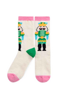 Cozy crew-length socks with a playful nutcracker motif in bright, festive colors. These Nutcracker Socks are plush and soft to the touch, with contrast heel and toe detailing and a cushioned body for extra comfort. Designed to add a whimsical holiday accent to loungewear or pajamas. They make an easy seasonal gift or stocking stuffer for anyone who loves festive novelty accessories. Fit: size 5-13