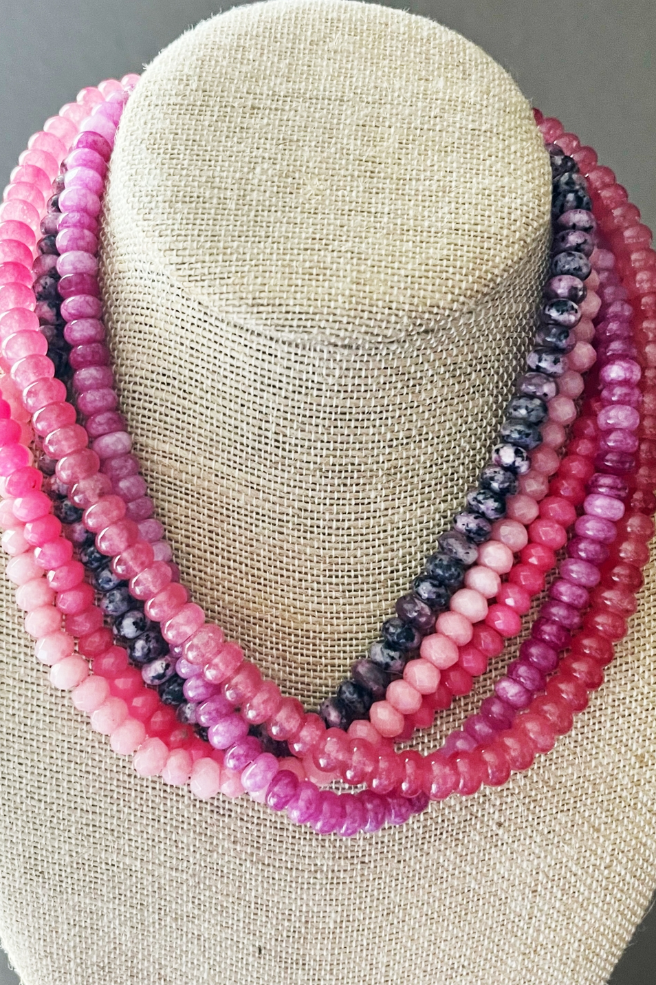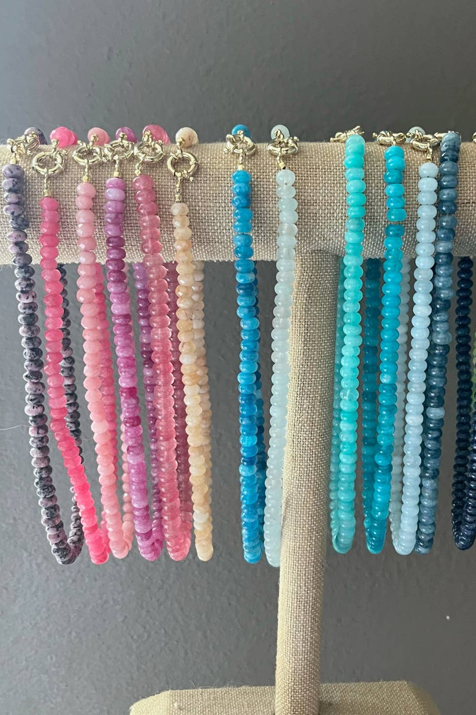 NECKLACE IS HANDMADE IN SOUTH CAROLINA USING GEMSTONE BEADS AND 18KT GOLD PLATED CLASP. PERFECT TO PAIR WITH CHARMS ON THE CLASP, ADD A PENDENT OR CHARM TO THE FRONT, WEAR I LAYRED OR ALONE.