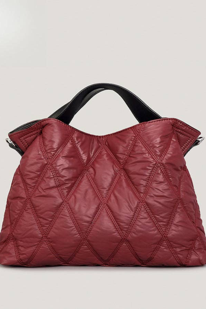 IF YOU LOVE QUILT YOU WILL LOVE THE DIAMOND QUILTING TEXTURE ON THIS BAG. NOT TO BIG OR SMALL, THIS BAG HAS A TOP HANDLE, OR CAN BE WORN AS A CROSS BODY, THE BEST OF BOTH WORLDS. AT THIS PRICE ITS A MUST HAVE.