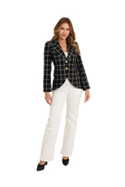 WHAT A BEAUTY!! THIS CHECKERED CUTAWAY BLAZER IS A STEP ABOVE THE REST. IT HAS SO MUCH DETAIL, A NOTCHED LAPEL COLLAR, SINGLE BREASTED WITH FRONT BUTTON CLOSURE. NOT TO MENTION, FRONT FLAP POCKETS, BACK VENT SLIT, CONTRAST FAUR LEATHER THROUGHOUT. THIS JACKET IS FITTED.