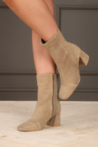 ADD A STAPLE TO YOUR SHOE ROTATION WITH THESE EFFORTLESS ANKLE BOOTS FEATURED IN A STUNNING SUEDE FABRICATION WITH THICK, ANGLES HEELS AND ROUNDED TOE FOR SHAPE. THESE BOOTS HAVE A SIDE ZIP CLOSURE.