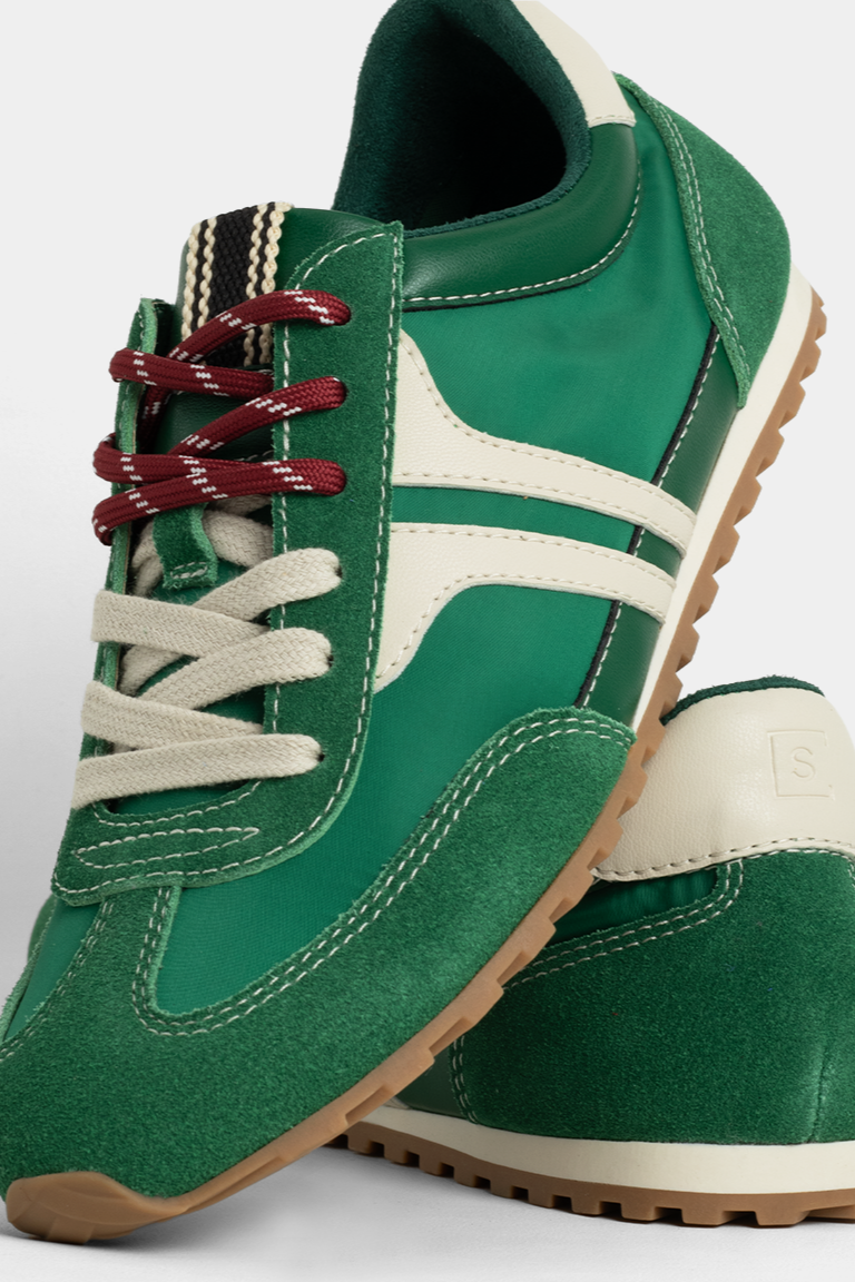 SAY HELLO TO YOUR COLOR POP. THE KELLY GREEN BRINGS RETRO ENERGY AND STANDOUT STYLE WITH BOLD GREEN SUEDE AND SPORTY WHITE DETAILING. PERFECT FOR THOSE DAYS WHEN YOUR SNEAKERS MAKE THE OUTFIT. LIGHTWEIGHT AND EASY TO PAIR, ITS YOUR NEW GO-TO FOR BOLD, EFFORTLESS LOOKS. A SNEAKER WITH PERSONALITY-MADE TO TURN HEADS. JUMP ON BOARD WITH THE TWO TONE LACES!