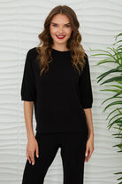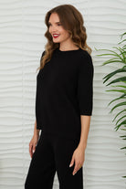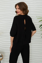 A soft knit pullover cut from a sweater fabric, designed with a crew neckline and a relaxed silhouette. The Riley Peek a Boo Sweater features short, elbow-skimming sleeves and ribbed trim at the hem and cuffs for subtle texture. Its lightweight knit makes it perfect for layering or lounging. This versatile piece balances cozy comfort with polished everyday style. Would go great with any of the other Milio Milano pieces sold at MODA Boutique.