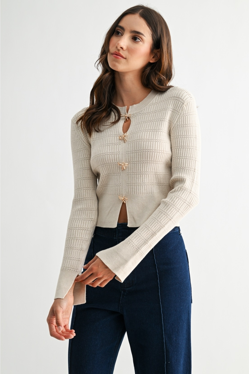 LIGHT WEIGTH SWEATER WITH BOW BUTTONS