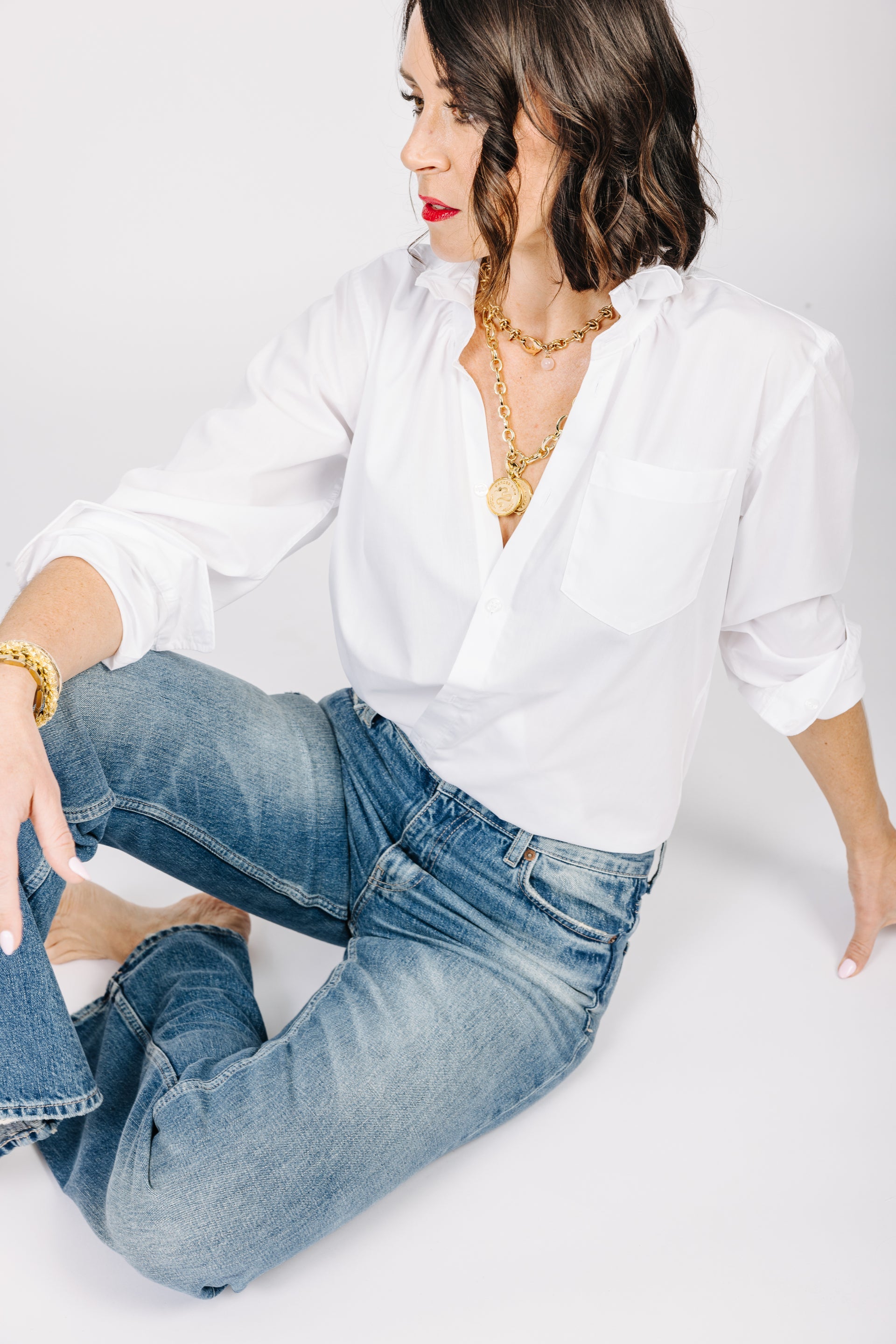 WHITE LONG SLEEVE BLOUSE WITH RUFFLE COLLAR
