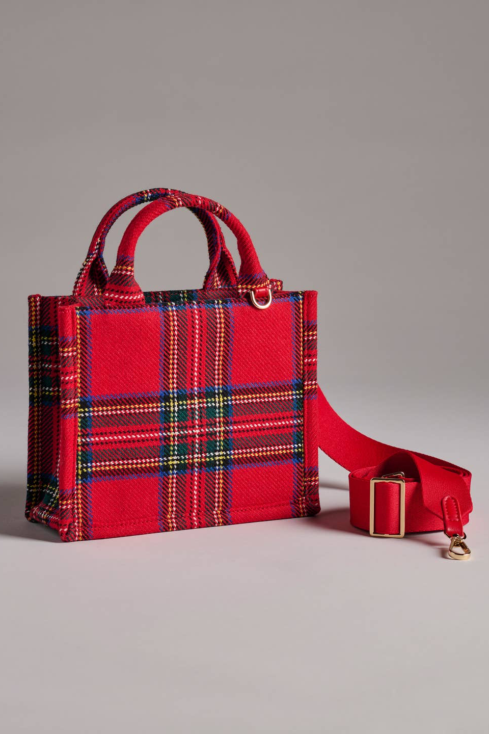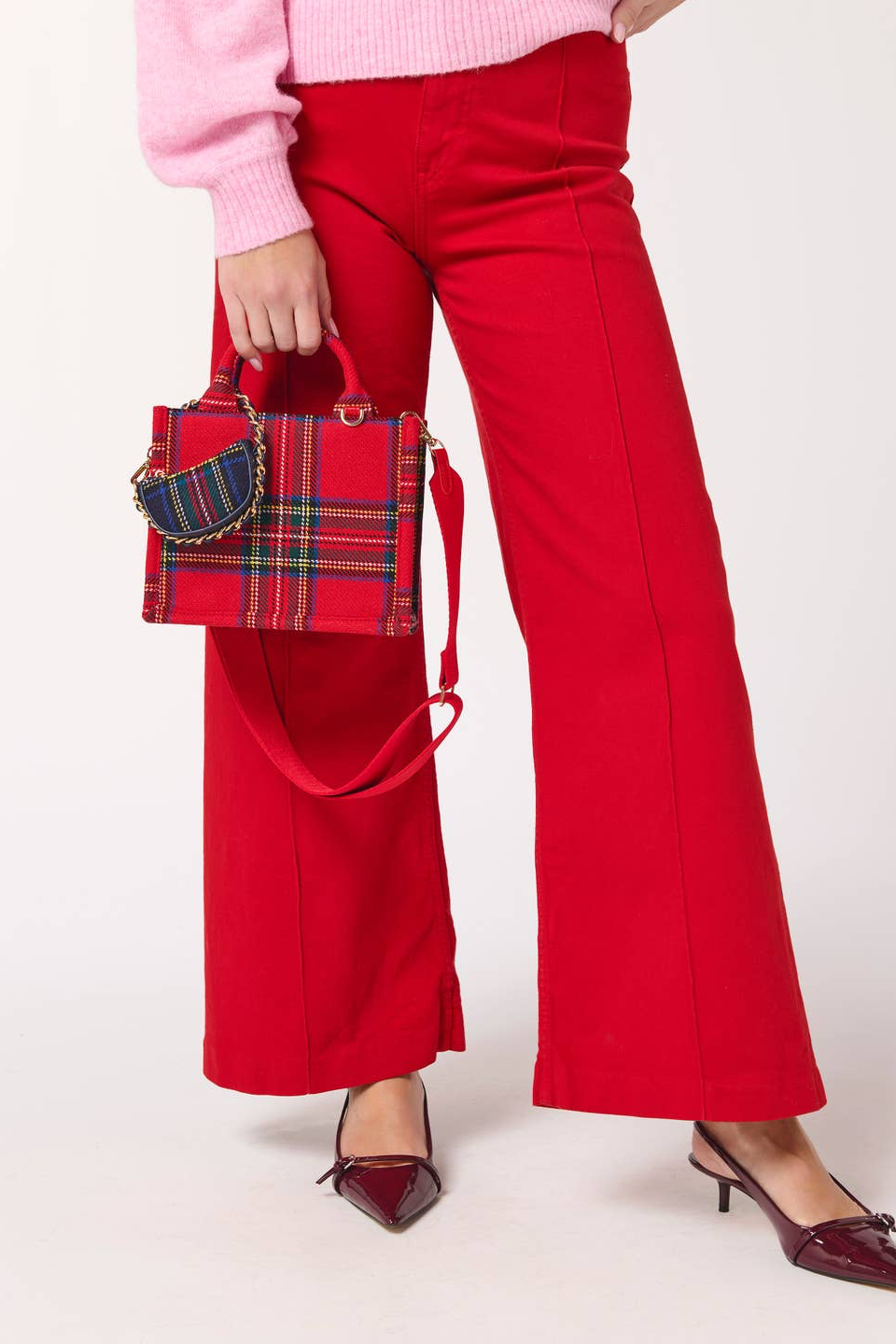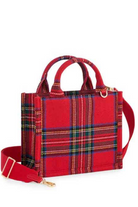 A compact, structured mini tote in a vibrant red plaid, the Mini Scottie Bag offers a playful, fashion-forward silhouette. The Mini Scottie Bag has dual top handles and a removable shoulder strap for versatile wear. Textured fabric construction and gold-tone hardware give it a polished yet casual feel. Has magnetic snap closure, while the interior zip and slip pockets keep things tidy. It’s perfect for on-the-town errands or off-duty weekend styling.