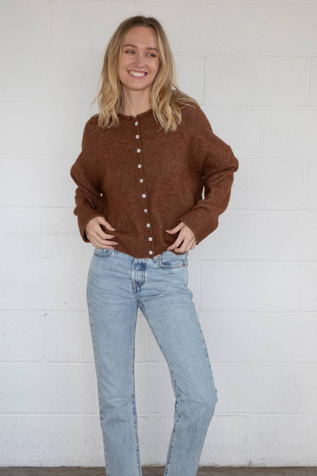 The perfect sweater for dress up or dress down. Great with a camisole underneath to wear partially unbuttoned for a more stylish look. Soft and cozy cardigan with rolled edge finish on the sleeves and collar.