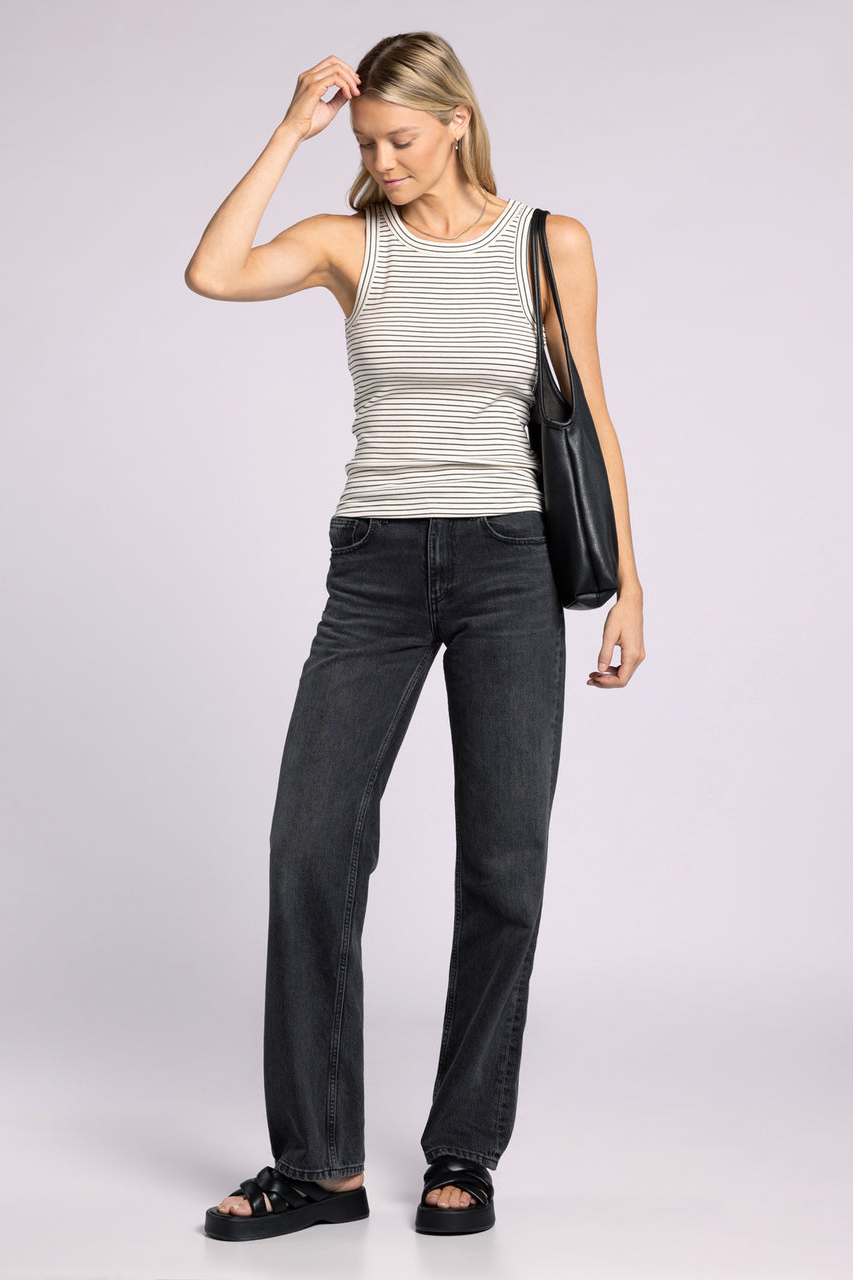 The Stripe Edlin Tank is a fitted sleeveless tank with narrow horizontal stripes and a classic crew neckline. Lightweight knit fabric sculpts a slim silhouette that layers easily or stands alone on warm days. Versatile tank for casual everyday wear. Pair it with jeans or shorts for an effortless, polished look.